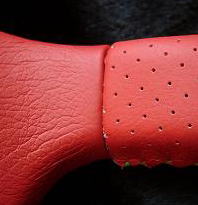 ヨーロッパから輸入をしている自動車シート用の本革を使って、車椅子のアームレストの張替をいたします。