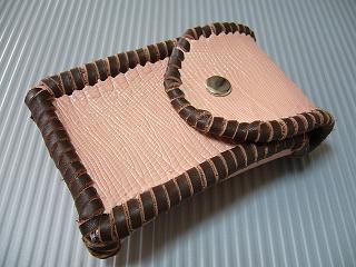 | 商品説明 | 名刺サイズのカードケースで、名刺が約80枚入ります。 表面は、クロコ柄型押しのオレンジピンクレザーを使用。 内側は、パープルのスエードレザーを使用しています。 周囲は、ブラウンの革ひもかがりで、仕上げているケースです。 |