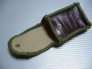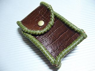 | 商品説明 | 名刺サイズのカードケースで、名刺が約100枚入ります。 表面は、クロコ柄型押しのブラウンレザーを使用。 内側は、ベージュのパンチングレザーを使用しています。 周囲は、抹茶の色あいの革ひもでかがり仕上げをしました。 |