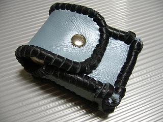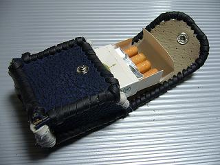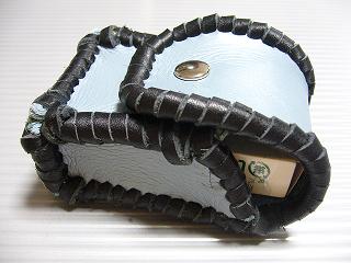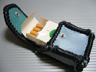| 商品説明 | ショートホープ専用サイズで製作しました。 パール発色のあるライトブルーレザーの周囲をブラックの革ひもで、かがって仕上げています。 内側は、ペパーミントブルーのパンチングレザーを使用しています。 蓋は、スナップボタン止めです。 小ぶりで、スポーティーな感じで仕上げてみました。 *タバコは、イメージですので、付属しません。 |