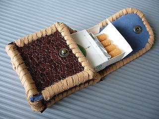 | 商品説明 | ショートホープ専用サイズで製作しました。 カーキのチェック柄型押しレザーに、裏地は、ライトブラウンレザー使用し、周囲は、パールワインレッドの革ひもでかがって仕上げました。 蓋は、スナップボタン止めです。 落ち着きがあり、ビンテージと今風を兼ね備えた味のあるデザインとしました。 *タバコは、イメージですので、付属しません。 |