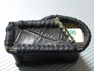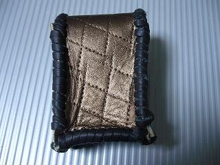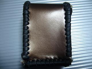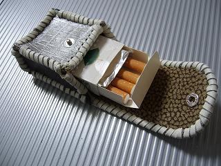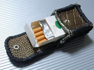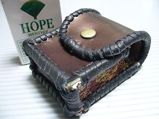 | 商品説明 | ショートホープ専用サイズで製作しました。 表面は、左右を除いた部分が、ブラウンメタリックのレザーを使用しています。 表面の左右側は、レザーに、着物のような和柄をデザインしたものを使用しています。 内側は、正面側と後ろ側の側面が、ベージュのバックスキンに、ブラウンのまだら模様を染めたレザーを使用しています。 サイドと底の部分は、ベージュのパンチングレザー(穴貫通)を使用しています。 周囲は、ブラックの革ひもかがりで、仕上げています。 蓋は、スナップボタン止めです。 *タバコは、イメージですので、付属しません。 |