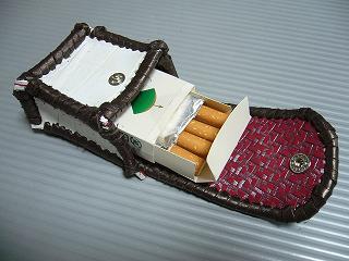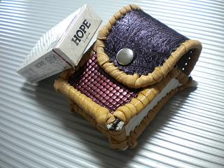 ショートホープ専用サイズで製作しました。 表面は、クロコ柄型押しのホワイトレザーを使用しています。 内側は、編み込み柄デザイン型押しレザーで、縦横の編み込みに、レッドとレッドメタリックを使った柄になっています。 ケースの周囲は、ブラウンメタリックの革ひもで、かがり仕上げをしました。 *タバコは、イメージですので、付属しません。 |