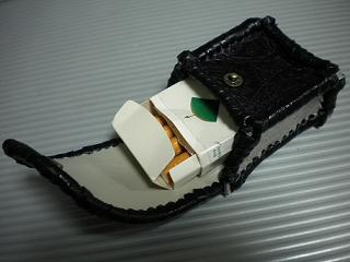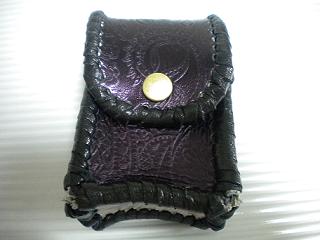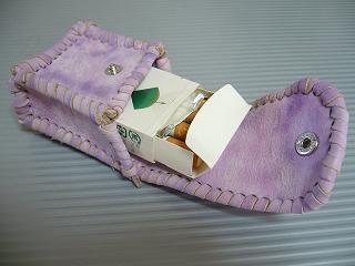 | 商品説明 | ショートホープ専用サイズで製作しました。 ケース全体をパープルカラーをぼかして染めたデザインのレザーを使用。 ケースの周囲は、かがり仕上げをしています。 蓋は、スナップボタン止めで、光沢感のあるものを使用。 *タバコは、イメージですので、付属しません。 |