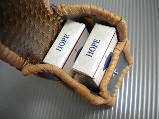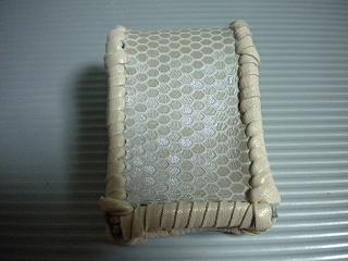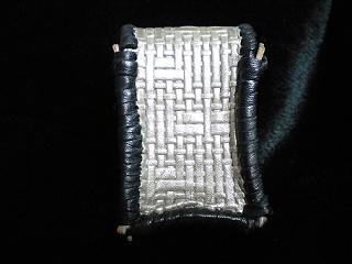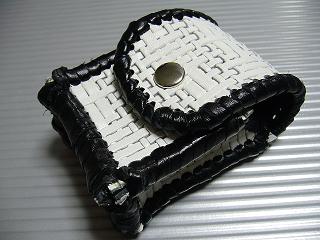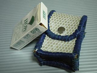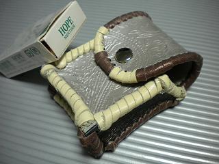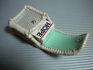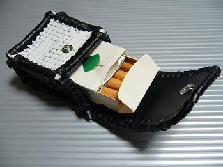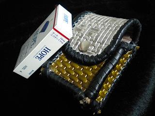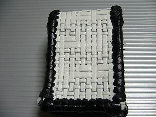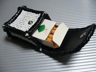 ショートホープ専用サイズで製作しました。 表面は、縦横の編み込みをデザインした型押しのホワイトレザーを使用しました。 このレザーは、とても立体感のあるレザーです。 内側は、ブラックレザーを使用。 ケースの周囲は、ブラックの革ひもで、かがり仕上げをしています。 *タバコは、イメージですので、付属しません。 |