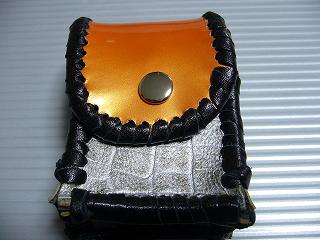 ショートホープ専用サイズで製作しました。 表面の正面側、左右側面、底の部分は、クロコ柄型押しのシルバーレザーを使用しています。 表面の蓋から後ろ側にかけては、自動車塗装のマジョーラのような独特な発色感のあるオレンジレザーを使用しています。 内側は、ブラックレザーを使用。 ケース周囲は、ブラックレザーで、かがり仕上げをしています。 *タバコは、イメージですので、付属しません。 |