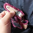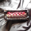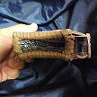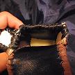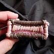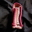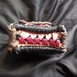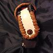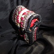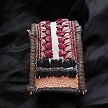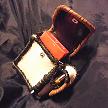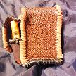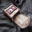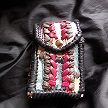 寸法は、高さ11.5センチ、縦3.5センチ、横7センチです。 収納できるタバコサイズは、レギュラーサイズのみで、ロングは、対応しません。 ケース全表面は、色々カットしたレザーをライトブラウンとワインレッドのレザーでかがりをして、レザー同士をつないだパッチワーク調となっています。 ケース内側は、クリームレザーを使用しています。 ケース周囲のかがりは、ブラックレザーで行い、仕上げました。 *タバコは、イメージですので、付属しません。 |