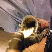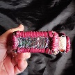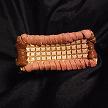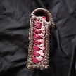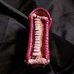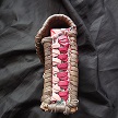 寸法は、高さ11.5センチ、縦3.5センチ、横7センチです。 収納できるタバコサイズは、レギュラーサイズのみで、ロングは、対応しません。 ケース表面の正面側は、溝のあるデザイン型押しのピンクレザーを使用。 表面の蓋から後ろ側にかけては、編み込みデザイン型押しのカッパーブラウンレザーを使用しています。 表面の両側面は、ツタのデザイン型押しのパープルレザーを使用しています。 表面の底の部分は、5mmの正方形を型押したホワイトレザーを使用。 ケース内側は、ライトベージュレザーを使用しました。 ケース周囲は、ピンクレザーとブラウンレザーを使用して、かがりで仕上げています。 *タバコは、イメージですので、付属しません。 |