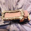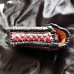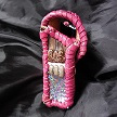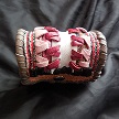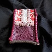 寸法は、高さ11.5センチ、縦3.5センチ、横7センチです。 収納できるタバコサイズは、レギュラーサイズのみで、ロングは、対応しません。 表面は、カットしたレザーをピンクレザーで、かがりをしてつなぎ合わせたパッチワーク調です。 表面の正面側は、編み込みデザインを型押した、ホワイトレザーとホワイトレザーにレッドのギザ模様をプリントしたレザーを使っています。 表面の両側面は、ベージュレザーに、花柄レース生地のようなデザインを型押したものとブラウンレザーを使用。 表面の底の部分は、ブラウンレザーとレッドメタリックのボカシレザーを使用。 表面の蓋から、後ろ側にかけては、ボーダー柄をプリントした布生地のようなレザー、クロスデザインを型押したレッドメタリックレザー、 編み込みデザインを型押したホワイトレザーとホワイトレザーにレッドのギザ模様をプリントしたレザーを使用しました。 ケース内側、蓋から後ろ側にかけては、ベージュレザーに、花柄レース生地のようなデザインを型押したものとブラウンレザーを使用。 内側の正面、両側面、底の部分は、ロジーブラウンレザーを使用。 ケース周囲のかがりは、ライトブラウンレザーとワインレッドレザーを使用して、かがり仕上げをしています。 *タバコは、イメージですので、付属しません。 |