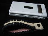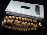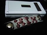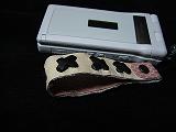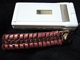 | 説明 | 白のクロコ型押しレザーに、黒革ひもかがり。内側とトプは、ピンクの型押しレザー。取り付けひもは、ブラック。 *携帯電話は、参考で付属しません。 |