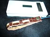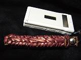 | 説明 | ブラウンの型押しレザーを重ね継ぎをして、パールワインレッドの革ひもで、かがり仕上げと、センタークロス仕上げ。 *携帯電話は、参考で付属しません。 |