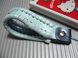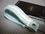 | 説明 | 表面は、クロコ柄型押しのホワイトレザーを使用。 内側、トップの部分、周囲のかがりは、パール発色のあるスカイブルーのレザーを使用しました。 ストラップひもは、ブラックを使用。 *携帯電話は、参考で付属しません。 |