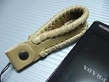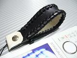 表面は、ブラックレザーに、擦れた様なデザイン加工を施してあるレザーを使用しています。 内側は、ブラックレザーです。 トップの部分と周囲のかがりは、カーキのレザーを使用して、仕上げています。 ストラップひもは、ブラックを使用。 *携帯電話は、参考で付属しません。 |