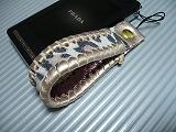 表面は、スエード系のレザーで、ピンクをモチーフとした豹柄のものを使用しています。 内側は、アルミカラーの発色があるレッドピンクのレザーを使用。 トップの部分と周囲のかがりは、ピンクゴールドのレザーを使用しています。 ストラップひもは、ブラックを使用。 *携帯電話は、参考で付属しません。 |
