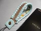 | 説明 | 表面は、擦れた感じを出したデザインのブラックレザーを使用しています。 内側とトップの部分、ストラップ周囲のかがりは、パール発色のあるスカイブルーのレザーを使用し、仕上げました。 ストラップひもは、ブラックを使用。 *携帯電話は、参考で付属しません。 |