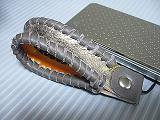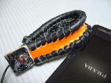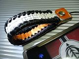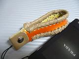 | 説明 | 表面は、立体感のある編み込みデザインを型押しをしたホワイトレザーを使用しています。 内側とトップの部分は、自動車塗装のマジョーラカラーのような発色のあるオレンジレザーを使用しました。 ストラップ周囲は、ブラックレザーで、かがり仕上げをしています。 ストラップひもは、ブラックを使用。 *携帯電話は、参考で付属しません。 |
