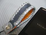 表面は、アルミ発色のあるブルーレザーを使用しました。 内側は、マジョーラカラーのような発色のあるオレンジレザーを使用しました。 トップの部分と周囲のかがりは、シルバーメタリックのレザーを使用。 ストラップひもは、ブラックを使用。 *携帯電話は、参考で付属しません。 |