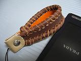 表面は、オレンジの入ったブラウン系のカラーをしたレザーを使用しています。内側、トップ、周囲のかがりは、ブラックレザーを使用して仕上げています。 ストラップひもは、ブラックを使用。 *携帯電話は、参考で付属しません。 |