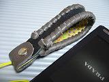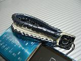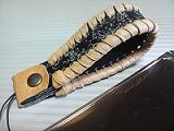 表面は、龍の鱗をモチーフにしたデザインを型押しをしたダークブルーのレザーを使用しています。 鱗の部分には、シルバーカラーで、縁取りがあるものです。 内側は、シルバーメタリックのレザーを使用しました。 本体部分端部に、黒みのあるシルバーメタリックのレザーをかしめ金具を使いつなげています。 ストラップの輪になる端部は、つなげたレザーと同じ、黒みのあるシルバーカラーのレザーで、かがっています。 トップの部分は、シルバーメタリックのレザーを使用。 このレザー端部も、同じシルバーメタリックのレザーで、かがりをしています。 ストラップひもは、ブラックを使用。 *携帯電話は、参考で付属しません。 |