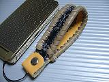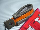 表面は、擦れた感じを出したデザインのブラックレザーを使用しています。 内側とトップの部分は、オレンジの入った茶系のレザーを使用しました。 ストラップ周囲は、コーヒーブラウンの革ひもかがりで、仕上げています。 ストラップひもは、ブラックを使用。 *携帯電話は、参考で付属しません。 |