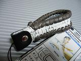 表面は、縦横の立体感のある編み込み柄型押しのホワイトレザーを使用しています。 内側は、シルバーメタリックのレザーを使用。 トップの部分は、ブラックレザーです。 ストラップ周囲は、アッシュグレーの革ひもで、かがり仕上げをしました。 ストラップひもは、ブラックを使用。 *携帯電話は、参考で付属しません。 |