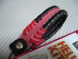 表面は、ブラックレザーを使用しました。 内側は、レッドレザーを使用。 トップの部分と周囲のかがりは、アッシュグレーのレザーを使用しています。 ストラップひもは、ブラックを使用。 *携帯電話は、参考で付属しません。 |