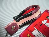 表面のレザーは、ピンクをベースに、レッドなどのカラーをブラシで擦ったような刷毛目を淡く出したものを使用しました。 内側は、レッドレザーを使用。 トップの部分は、ワインレッドレザーを使用しました。 ストラップ周囲は、ブラックとワインレッドのレザーをつないで、かがり仕上げをしています。 ストラップひもは、ブラックを使用。 *携帯電話は、参考で付属しません。 |