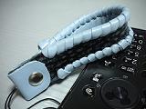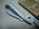 表面と周囲のかがりは、ライトブルーのレザーを使用しました。 内側は、ホワイトレザーを使用。 トップの部分は、ライトグレーのレザーを使用。 ストラップひもは、ブラックを使用。 *携帯電話は、付属致しません。 |
