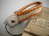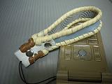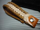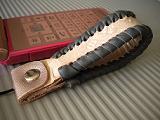 | 説明 | 表面は、立体感のある編み込みデザインを型押しをした、ホワイトレザーを使用しています。 内側とトップの部分は、オレンジブラウンのレザーを使用しています。 周囲の部分は、ライトブラウンのレザーで、かがりをして仕上げました。 ストラップひもは、ブラックを使用。 *携帯電話は、付属致しません。 |