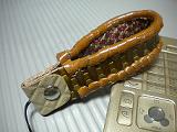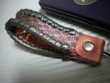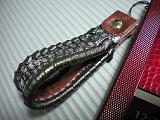 | 説明 | 表面は、レッドスネークデザインを型押しをした、レザーを使用しています。 内側とトップの部分は、細かい四角で、チェック柄を表現した、型押しシルバーレザーを使用しました。 周囲の部分は、パールブラウンのレザーで、かがり仕上げをしました。 ストラップひもは、ブラックを使用。 *携帯電話は、付属致しません。 |