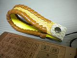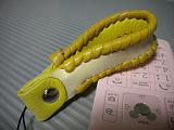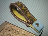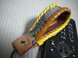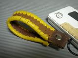 表面は、ライトブラウンパンチングレザーを使用。 内側とトップの部分は、レモンイエローレザーを使用。 周囲の部分は、イエローレザーで、かがりをして、仕上ました。 ストラップひもは、ブラックを使用。 *携帯電話は、付属致しません。 |