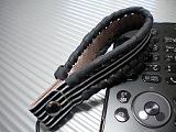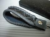表面は、艶消しブラックのレザーを使用しています。 内側とトップの部分は、編み込みデザインを型押しをした、渋茶のカラーのレザーを使用しました。 周囲の部分は、グレーレザーを使用しています。 ストラップひもは、ブラックを使用。 *携帯電話は、付属致しません。 |