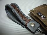 表面は、細かい草木のデザインを型押しをした、ブラウンレザーを使用しています。 内側、トップの部分、周囲のかがりは、グレーレザーを使用しています。 ストラップひもは、ブラックを使用。 *携帯電話は、付属致しません。 |