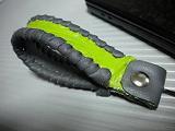 表面は、グリーンレザーを使用しています。 内側、トップの部分、周囲のかがりは、グレーレザーを使用しています。 ストラップひもは、ブラックを使用。 *携帯電話は、付属致しません。 |