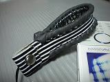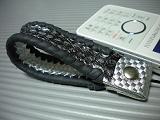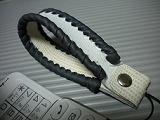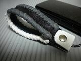 表面は、ホワイトとブラックのストライプ柄デザインを型押しをした、レザーを使用しています。 凸の部分がブラック、ホワイトの部分が、凹になっています。 内側は、クロコ柄型押しの光沢感のあるシルバーレザーを使用しています。 周囲の部分は、グレーレザーで、かがりをして、仕上げています。 ストラップひもは、ブラックを使用。 *携帯電話は、付属致しません。 |