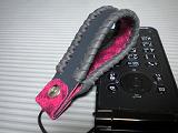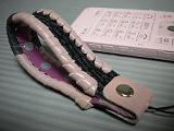 表面と周囲のかがりは、ピンクレザーを使用しています。 内側とトップの部分は、艶消しブラックのレザーを使用しました。 ストラップひもは、ブラックを使用。 *携帯電話は、付属致しません。 |