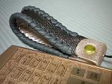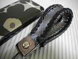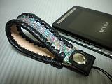 | 説明 | 表面は、ブラックベースに、グレーメタリックの斑点デザインのレザーを使用。 内側とトップの部分は、細かい四角で、チェック柄を表現した、型押しシルバーレザーを使用しています。 周囲の部分は、パールブラウンのレザーで、かがり仕上げをしています。 ストラップひもは、ブラックを使用。 *携帯電話は、付属致しません。 |