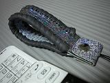 | 説明 | 表面は、ブラックベースに、グレーメタリックの斑点デザインのレザーを使用しました。 内側とトップの部分は、ブラウンベースに、ゴールドとブラックのウェーブデザインをプリント加工したレザーを使用しています。 周囲の部分は、グレーレザーで、かがりをして、仕上げました。 ストラップひもは、ブラックを使用。 *携帯電話は、付属致しません。 |