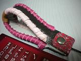 表面は、ライトピンクレザーを使用。 内側とトップの部分は、メタルシルバーのレザーを使用しました。 周囲のかがりは、ピンクのカラーが入ったレッドレザーで、仕上げています。 ストラップひもは、ブラックを使用。 *携帯電話は、付属致しません。 |