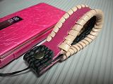 表面は、編み込みデザインを型押した、ブラックレザーを使用。 内側は、ライトピンクレザーを使用しました。 トップの部分は、アルミカラーのレッドレザーを使用。 周囲の部分は、ピンクレザーで、かがり仕上げをしています。 ストラップひもは、ブラックを使用。 *携帯電話は、付属致しません。 |