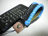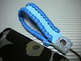 表面は、タンカラーのレザーを使用しています。 内側、トップの部分、周囲のかがりは、ライトブルーのレザーを使用して仕上げました。 ストラップひもは、ブラックを使用。 *携帯電話は、付属致しません。 |