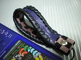 表面は、濃いめのパープルレザーを使用。 内側とトップの部分は、ブラックとレッドクロス線柄のチェックデザインスエードレザーを使用しました。 周囲の部分は、ブラックレザーで、かがり仕上げをしました。 ストラップひもは、ブラックを使用。 *携帯電話は、付属致しません。 |