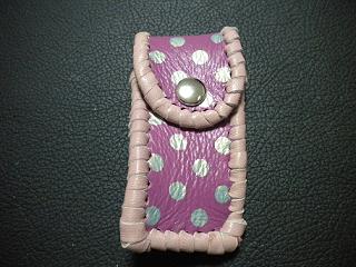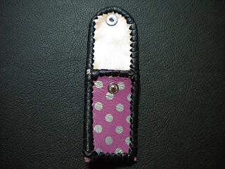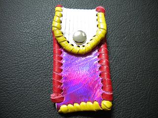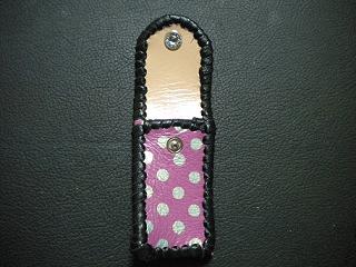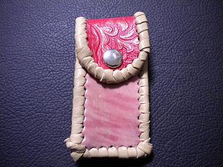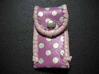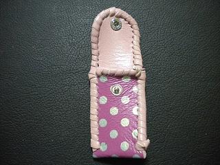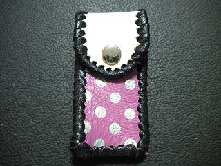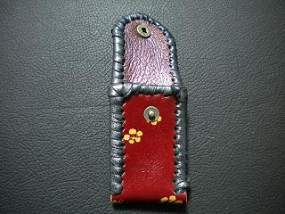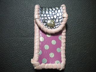 | 説明 | 表面は、ピンクの入ったレッドカラーのレザーに、シルバーの水玉プリン加工が施してあるレザーを使用しました。 内側は、ライトピンクレザーを使用しています。 ケース周囲は、ピンクレザーで、かがりをして、仕上げました。 |