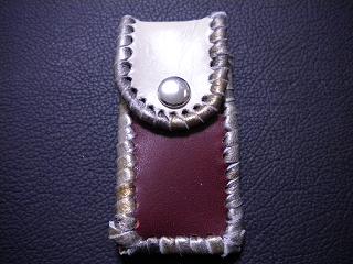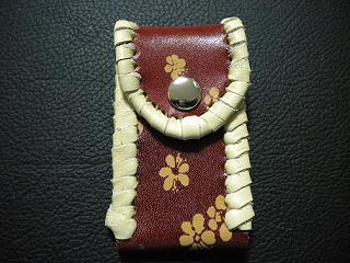 | 説明 | 表面は、素地のレザーに、花柄の模様だけを残し、ワインレッドのカラーで、染めた加工のレザーを使用しています。 内側は、オレンジブラウンのレザーを使用。 ケース周囲は、クリームのレザーで、かがりをして、仕上げました。 |