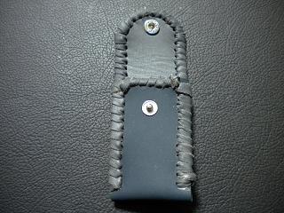 表面は、艶消しブラックレザーを使用しています。 内側と周囲のかがりは、グレーレザーを使用しました。 |