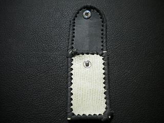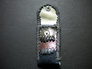 | 説明 | 表面は、ブラックレザーに、蝶のデザインを型押したものを使用しています。 内側は、ライトグレーパンチングレザーを使用。 周囲の部分は、グレーレザーで、かがりをして、仕上げています。 |