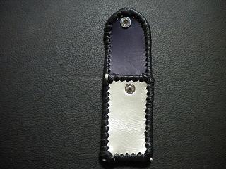 | 説明 | 表面の正面側は、パールホワイトレザーを使用。 表面の蓋から、後ろ側にかけては、和紙のような表面デザインのレザーを使用しています。 内側は、濃いパープルレザーを使用しました。 ケース周囲は、ブラックレザーで、かがり仕上げをしています。 |