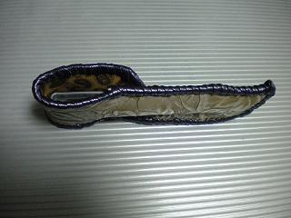 サイズは、縦17センチ×横5.5センチ。 15センチのペンが2本入ります。 表面は、薔薇のデザインを型押したレザーを使用。 カラーは、シルバーをぼかした色合いのものです。 ケース内側は、モカの色合いのバックスキン調レザーに、ペイズリーのプリントを施した、レザーを使用しています。 ケース周囲は、パープルメタリックレザーで、かがり仕上げをしました。 |