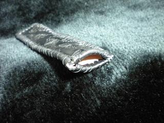| 説明 | ハサミの刃先に被せるカバーです。 サイズは、長さは約14センチ、幅4.5センチ(長い方)、幅3センチです。 本体表面は、樹木の表皮のようなデザイン型押しレザーを使用しています。 ケース内側は、ホワイトグレーレザーを使用しています。 ケース周囲は、ブラックレザーで、かがり仕上げをしました。 |
