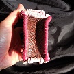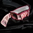 ケース寸法:幅11センチ、長さ17センチ、底の直径6センチ(円形部分) ケース表面部分は、メッシュ模様を型押したメタリックレッドレザーとダークレッドのクロコ柄型押しレザーを使用しています。 底の表面部分は、ロジーブラウンレザーを使用。 蓋の表面部分は、ホワイトのクロコ柄型押しレザーを使用しました。 ケース内側は、メタリックレッドをボカシたデザインレザーを使用しています。 蓋の内側は、ボーダーラインをプリント加工した布生地のようなデザインのレザーを使用しています。 ケース周囲の部分は、ワインレッドレザー、ピンクレザー、ライトブラウンレザーを使って、かがり仕上げをしました。 *画像にあるメガネは、13.5センチ×4.5センチのものです。 *メガネは、参考のためのもので、付属しません。 |
